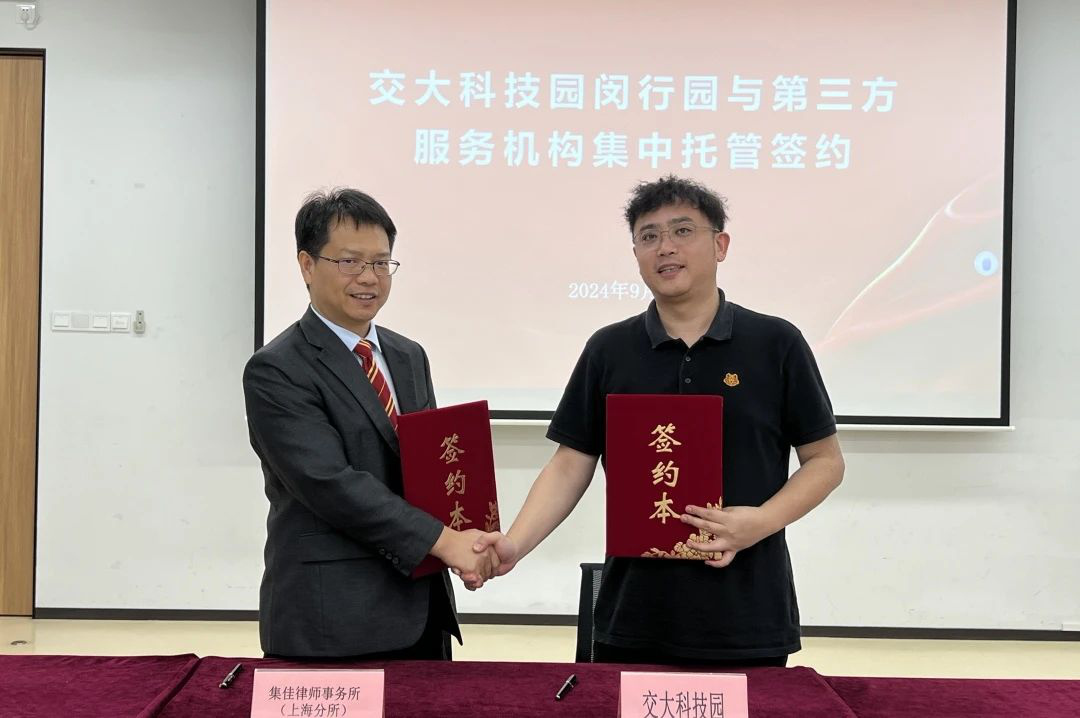 为助力企业科技创新和经济发展护航保障,提供高质量维权公益援助,会上举行了“上海市开发区协会维权援助工作站交大科技园闵行园工作室”揭牌仪式,交大科技园闵行园与B体育上海分所进行了托管签约。