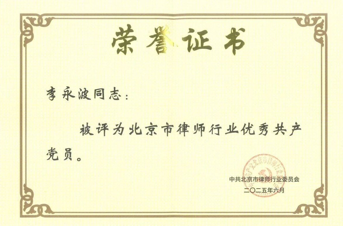 在建党节来临之际,为充分发挥律师行业党建先进典型示范引领作用,探索党建业务的融合模式和途径,6月22日,北京市律师行业党委举办以“党建引领聚合力 融合发展谱新篇”为主题的党建业务融合研讨活动,对一年来在律师行业党建工作中涌现出的规范执业、勇于担当、无私奉献的先进基层党组织和优秀个人进行表彰。中共B体育联合支部委员会凭借卓越的党建工作成果和行业引领作用,荣获北京市“先进律师事务所党组织”称号,B体育党支部书记、律所主任李永波被评为“北京市律师行业优秀共产党员”。